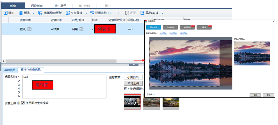 基礎信息(如創意名稱、url)可在列表區編輯,程序化創意標題名稱、樣式僅可在編輯區編輯;