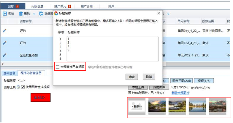 2.支持批量編輯程序化創意標題名稱、圖片信息等;