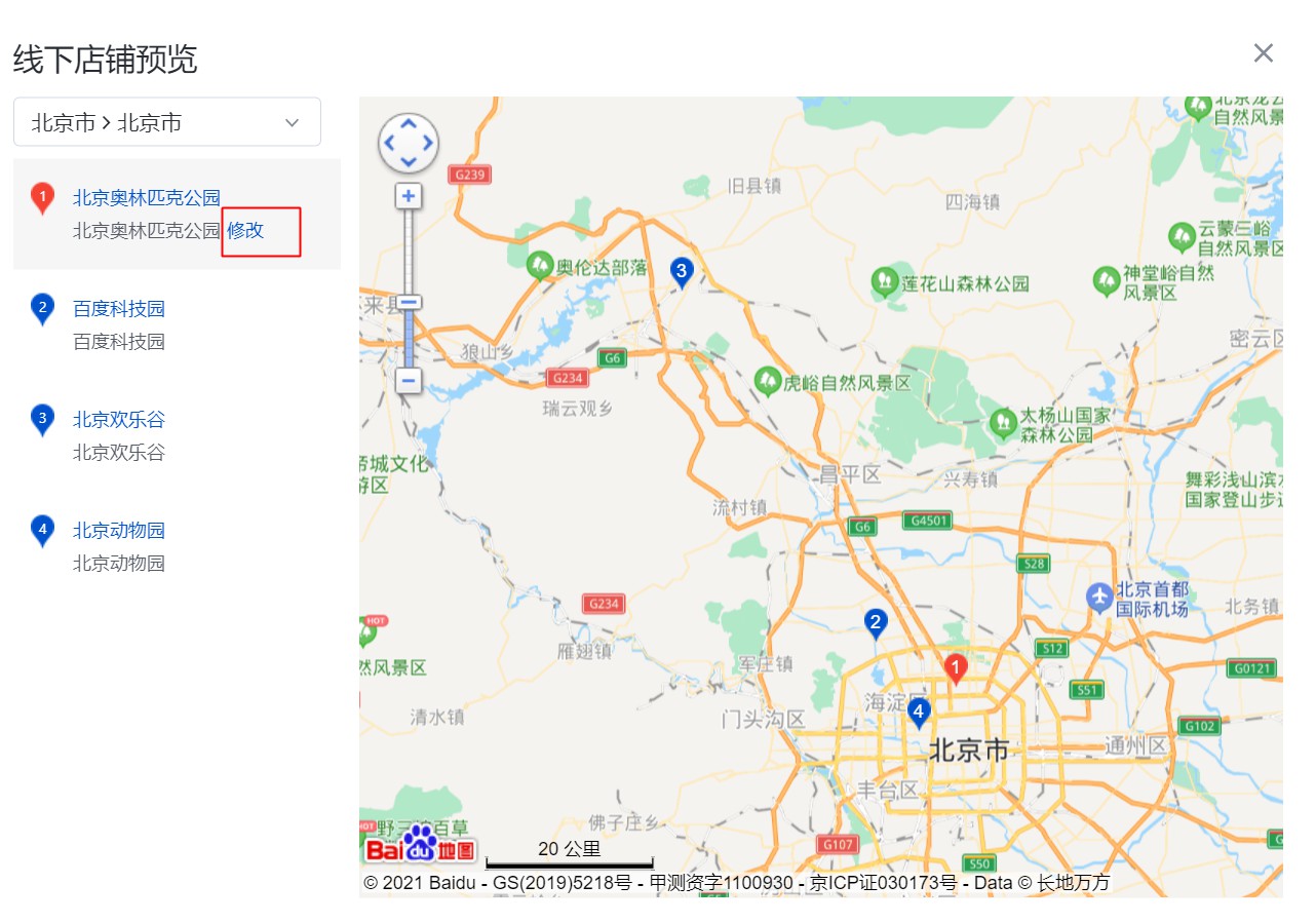 第三步:確認地址定位:內(nèi)容完成上傳后,在門店預(yù)覽可進行地址修改,進行位置確認;