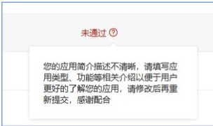 點擊【未通過】問號,查看了解審核不通過的具體原因(如下圖所示):