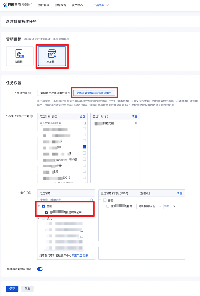 2、投放:強(qiáng)烈建議使用「本地推廣批量搭建助手」,將已有計(jì)劃一鍵切換為本地推廣目標(biāo)投放惠生活阿拉丁