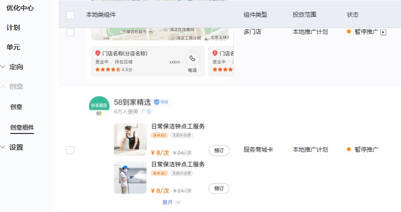 入口1:創(chuàng)意組件->本地類->服務(wù)商城卡