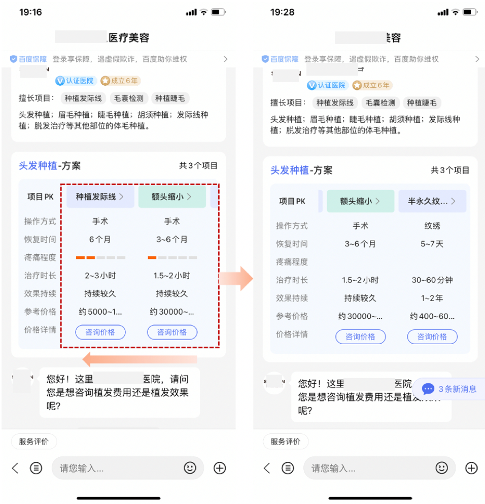 3)醫(yī)美咨詢頁-推薦項(xiàng)目卡與醫(yī)美咨詢頁-推薦方案卡互斥,不同時(shí)展現(xiàn);