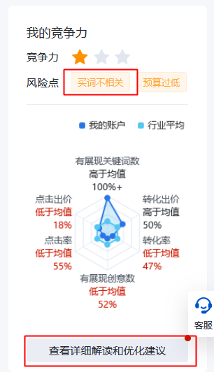 - 【我的競爭力】新增對存在少量不相關(guān)關(guān)鍵詞賬戶披露“買詞不相關(guān)”風(fēng)險點(diǎn)預(yù)警