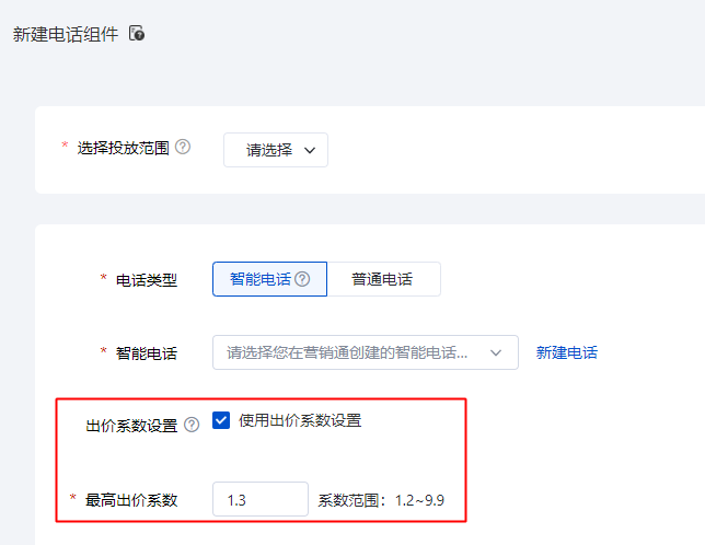 1、6月7日:新建營銷類組件將不支持設置出價系數(下圖紅框示意內容將下線);