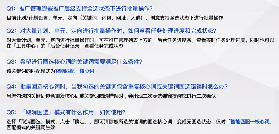 針對以上問題,本次對“推廣管理批量操作能力”進(jìn)行升級,升級后將支持更多批量能力,優(yōu)化用戶體驗(yàn)及操作效率,為客戶提供更高效、更全面的批量操作能力。