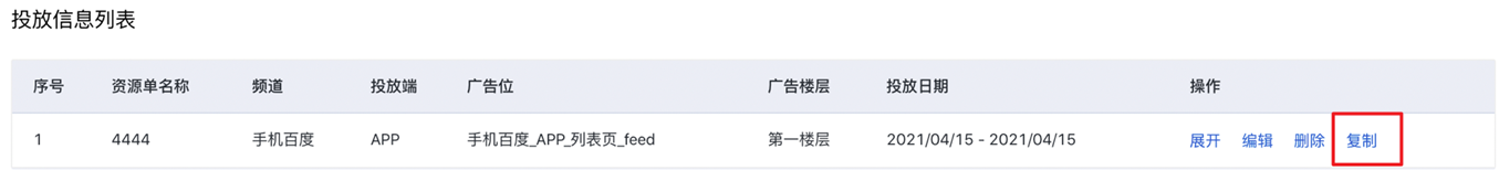 需注意,已經(jīng)提交詢量的詢量單不能再操作資源單復(fù)制,對(duì)于品牌impact類的訂單,復(fù)制后會(huì)清空開屏計(jì)劃ID,但保留開屏計(jì)劃類型選項(xiàng)。
