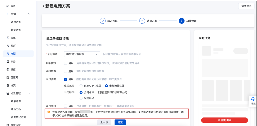 搜索推廣-轉化追蹤-電話數據授權接入方式下可自動創建電話撥通