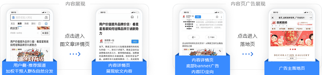 展現位置:百度APP\WAP:推薦頻道第一、二廣告位、圖文詳情頁、視頻詳情頁后貼、視頻列表頁、小視頻詳情頁;好看:視頻列表頁;貼吧;列表頁/內容頁。
